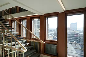 I 16. etasje er statsrådssalen kommet til heder og verdighet igjen. Furupanel på veggene og sifa-teppet på gulvet skal være helt likt slik det en gang så ut. Lampene er gjenskapt slik de var, og skal etter sigende koste rundt 60.000 kroner.