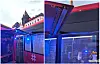 Da en buss skulle kjøre ut fra kaoset, kom den for nærme en brannbil og fikk store skader.