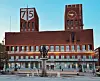 Det er Rådhuset som fyller 75 år i år, og det markeres tydelig med blant annet to store bannere på byggverket.