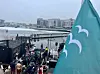 Miljø- og samferdselsbyråd Sirin Hellvin Stav ikledd håndkle på badebrygga ved Sukkerbiten.Foto: Oslo badstuforening