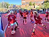 I går åpnet den nye ballbingen i Holmliaparken, med en underholdende fotballkamp med «Holmlia superjenter 2013». – Banen passer fint for oss som er barn, sier Maria og Sigrid.
