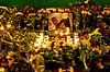 Oslo 20211009. Blomster og lys utenfor en inngang på Lofsrud skole på Mortensrud i Oslo etter at 20 år gamle Hamse Hashi Adan ble skutt og drept.Foto: Fredrik Hagen / NTB
