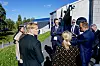 Retten tilbake på åstedet ved Lofsrud skole tirsdag. Politietterforsker Kristian Rosmo Eldegard viser for rettens medlemmer hvor Hamse Hashi Adan falt over ende i gressbakken ned fra skolen etter at han ble truffet i hodet av kuler fra våpenet Valon Avdyli avfyrte den 7. oktober 2021.Foto: Gorm Kallestad / NTB