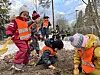 Herman Søndenaa og barn fra Rudshøgda Kanvas-naturbarnehage tar første spadetak.Foto: Turid Edvardsen
