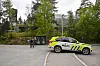 Politiet ved stedet der en mann ble funnet skutt sist helg. I bakgrunnen sees Mortensrud kirke, men politiet tror mannen ble skutt et annet sted.