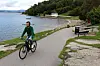 Spesielle hensyn: Det kan være mange turgåere på veien, og mange barn ved Hvervenbukta på fine sommerdager, sykle forsiktig.