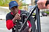 Haji Haji hjalp sykliester i nød med bakhjul, barneseter og bremser. Foto: Morten Lauveng Jørgensen