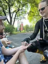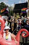 Opptreden med Skeivt Kunst- og Kultursenter foran Sofienbergkirken.Foto: Privat