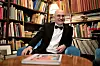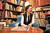 Magnus Øverland Dahl ønsker at kunstnere fra forskjellige sjangere skal kunne treffes hos Galleri Grotten. Bak Dahl synes litt av biblioteket hos galleriet.Foto: Olav Helland