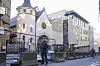 Synagogen i Bergstien. Her med vakthold fra politiet utenfor i forbindelse med statsministerens besøk i forrige måned.Foto: Terje Pedersen / NTB