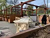 Nye bord og benker snekres på stedet og beises brune. Det trengs oppgradering etter en kald vinter.Foto: Cecilie Klem