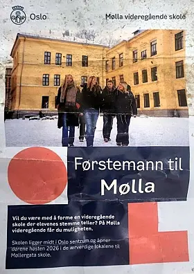 den nye Mølla videregående skole både på nettet og i en brosjyre. Det er helt