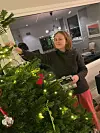 Å kjøpe juletre ved trikkestoppet på Lilleaker, har blitt en viktig tradisjon. Her i full sving med pynting av juletre lille julaften.Foto: Privat