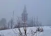 Holmenkollen kapell innhyllet i tåke. Bak der ser du bakken.Foto: Torill Berg og Bernt Roald Nilsen