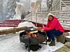 Roseslottet har nå stått der halvannet år. Keplerstjernen som sto her tidligere, har blitt flyttet til Gardermoen. Vi varmer opp med litt kaffe ved bålet før vi vandrer inn i eventyret om Roseslottet.