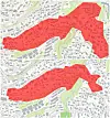 Deler av Midtstuen (oppe i venstre hjørne) har i nesten én måned vært en rød flekk på vann- og avløpsetatens kart etter vedvarende kokeanbefaling siden 8. januar, som først ble opphevet tirsdag ettermiddag.