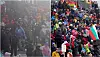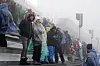 Flere publikummere stilte i tåka i Holmekollen torsdag (bildet til venstre), men måtte vende hjem uten å ha fått sett verdenscuprenn. Fredag (bildet til høyre) lettet tåka til slutt, slik at normaldistansen i skiskyting for både kvinner og menn kunne gjennomføres.Foto: Terje Bendiksby / NTB