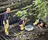 Her er de fire andungene endelig reddet opp fra risten. Se bilder av brannfolkenes redningsaksjon lenger ned i artikkelen.Foto: Oslo brann- og redningsetat