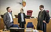 Psykologspesialist Knut-Petter Sætre Langlo (til v.) og rettspsykiater Synne Sørheim i samtale med forsvarer John Christian Elden.Foto: Ole Berg-Rusten / NTB