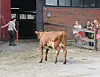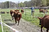 Til slutt er alle ute – også en ung forsiktig frøken som helst vil tilbake i fjøset. Der var det jo så greit og koselig. Men Sørum er ubøyelig – frisk luft og grønt gress er sunt.