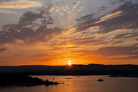 Se de spektakulære bildene av solnedgangen med utsikt mot Bygdøy fra lørdagskvelden.