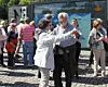 Mange turister fra nær og fjern fikk en rask innføring i norske skolekorps. Et eldre ektepar fra Spania tok seg like godt en svingom til musikken.