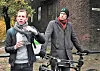 I vinter ble femåringen Viktor Rønes (t.v) påkjørt i Strømsveien. Mandag møtte han leder i mijø- og samferdselskomitéen i bystyret Eirik Lae Solberg (t.h) og de andre politikerne i komitéen for å kreve stakstiltak for fartsdemping i Strømsveien: Foto: Christian Boger