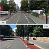 Ankerbrua over Akerselva før og etter rødasfaltering av sykkelfelt.Foto: Statens vegvesen