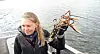 Overingeniør Linda Lemmens hos Norges miljø-og biovitenskapelige universitet (NMBU) viser fram en hummer fra indre Oslofjord. Legg merke til rogna den bærer med seg. Hummeren blir kjønnsmoden først når den er fem til seks år gammel. Hunnen bærer rogna med seg under halen.Foto: Anders Høilund