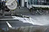 Gatevasken foregår med drikkevannet vi har i springen, men vaskerunden er velsignet av Vann- og avløpsetaten til tross for lav vannstand i magasinene.Foto: Bymiljøetaten