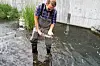 Terje Laskemoen, fra bymiljøetaten, kan konstatere at Hovinbekken er full av død fisk. Foto: Per Øivind Eriksen / Ensjø Aktuell informasjon
