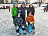 I jula koker det på Årvoll og Tonsenhagen naturisbane. På bildet (bak fra venstre): Iver, Jakob og Eik, nede sitter Martin og Eir.Foto: Gaute Christian Stensby