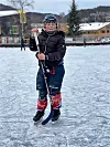Axel koser seg ute på isflaten i Årvoll idrettspark.Foto: Gaute Christian Stensby