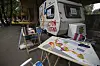 Hovedkvarteret for dugnadsarbeidet, actionvogna.Foto: Olav Helland