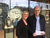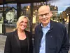 Klokkebutikken Thune har merket nedgangen i besøk. Her butikksjef Mia Fossheim Krohn og stortingsrepresentant Michael Tetzschner (H). Foto: Vegard Velle
