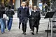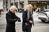 Finansminister Jens Stoltenberg (Ap) hånd i hånd med kona Ingrid Schulerud på vei til gravferdsseremonien for Roy Jacobsen i Oslo domkirke.Foto: Stian Lysberg Solum / NTB
