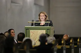 – Vi ser det åpenbare eksempelet i boka «Bare en mor». Svevende over bøkene, eller kanskje mer presist som en sterk understrøm, finner vi grunnholdningen. Den preget også mannen og hans engasjement for Ukraina. Han sa det er bedre å gjøre litt enn å mene mye, sa Kjær i sin tale i Oslo domkirke.