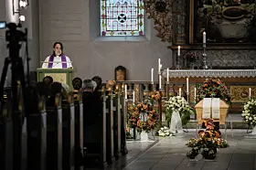 Kisten til Roy Jacobsen i Oslo domkirke.Foto: Stian Lysberg Solum / NTB