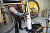 Han forklarer at det ikke er så rart at han har begynt som sykkelreparatør.