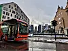 En buss i Schweigaards gate med Barcode i bakgrunnen på vei mot Oslo bussterminal.Foto: Petter Terning