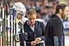 Instruksjoner fra treneren er viktig for å vinne en hockeykamp. � Alt går på engelsk, konstaterer Dan Remy Tangnes. Foto: Felix Klaus / EV Zug