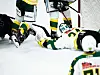 Så skal hjemmelaget ta fyr igjen, og snaut femten minutter ut i perioden, tror hjemmepublikumet at utligningen kommer. Det er Jesper Öhrvall som er sist på pucken. Men etter å ha sett målet på video, annullerer dommerne for interference på keeper (altså har hindret keeperen).