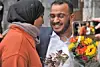 SVs Omar Samy Gamal (27) blir ny byråd for arbeid, sosial og mangfold. Her gratuleres han av Marian Hussein (SV) etter utnevnelsen. Foto: Christian Boger