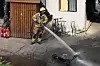 I bakgården gjør brannmannskapene klart med slangeutlegg, for å slukke og kjøle batteriet. Samtidig sendes røykdykkere inn i leiligheten for å søke etter folk og få kontroll på omfanget av brannen.
