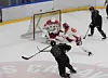 Grüner kunne godt ledet mer enn 2-0 etter første periode. Her er det Hermann Sagfossen som er nære på å overliste Joel Rumpel.