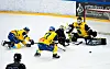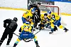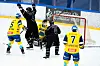 Storhamar-spillerne jubler mens hjemmelagets gutter depper etter et Storhamar-mål. Gjestene fra Hamar vant til slutt 7-3. Foto Bjørnar Morønning