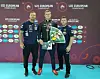 Dælengenga-bryteren Oskar Marvik tok for andre år på bronsemedaljei 130-kilosklassen under U23-EM i bryting i Tyrkia. Her flankert av trenerne Fritz Aanes og Eren Gjægtvik Foto: Sportsklubben 09