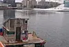 Den flytende badstua entusiastene håper å få permanent plassert på Sørenga. Foto: Christian Boger