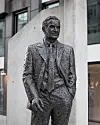 Eiendomskongen Olav Selvaag fikk satt opp en statue av seg selv sentralt på Tjuvholmen.Foto; Olav Helland