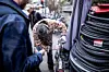 En kunde får fikset et sykkelsete av sykkelveteranen. Foto: Robin Sandvid